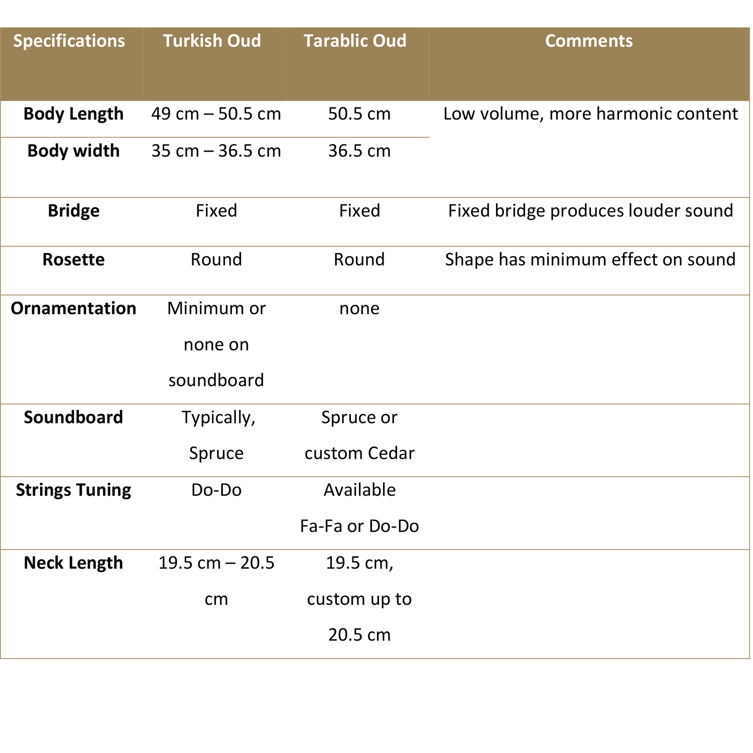 Turkish Oud Specs
