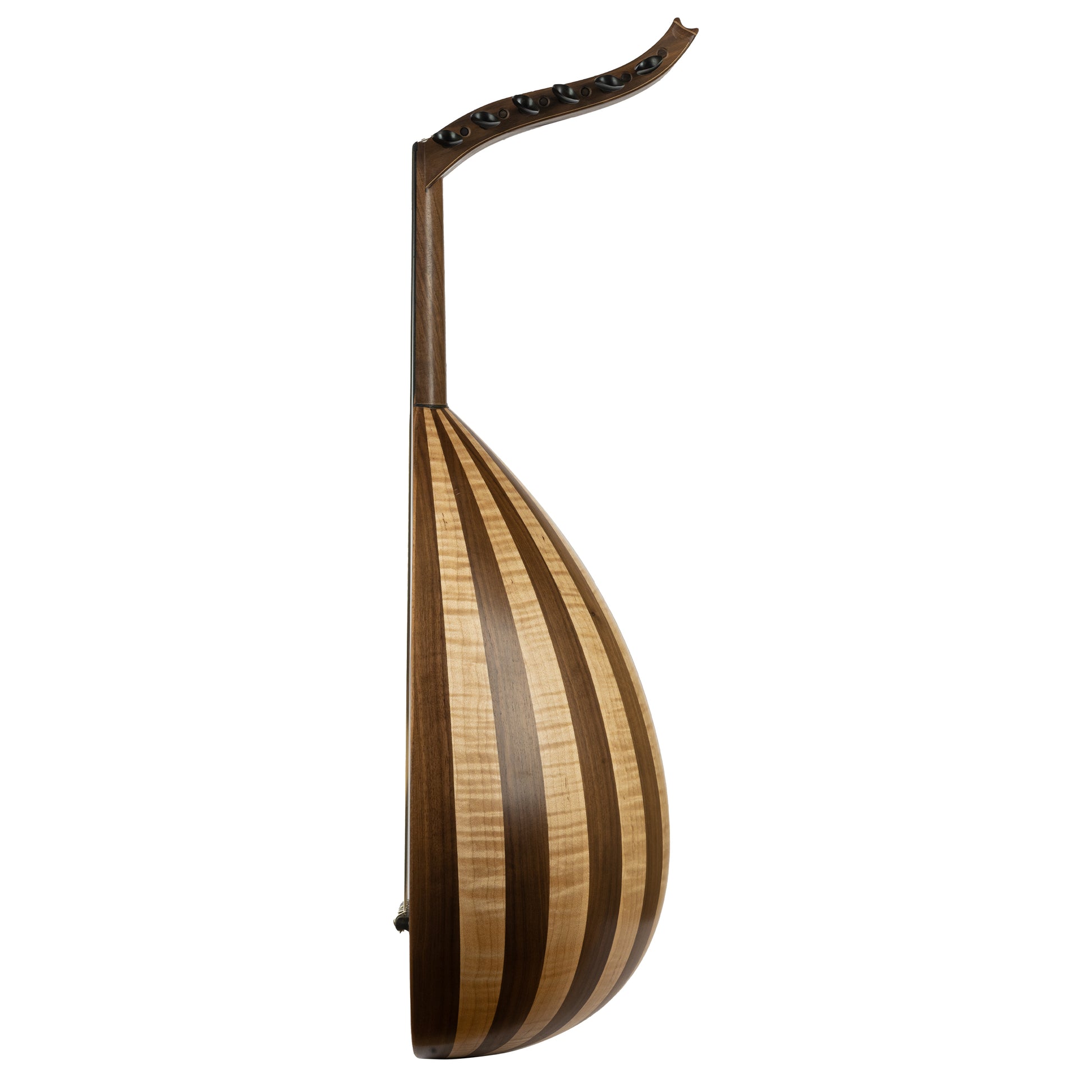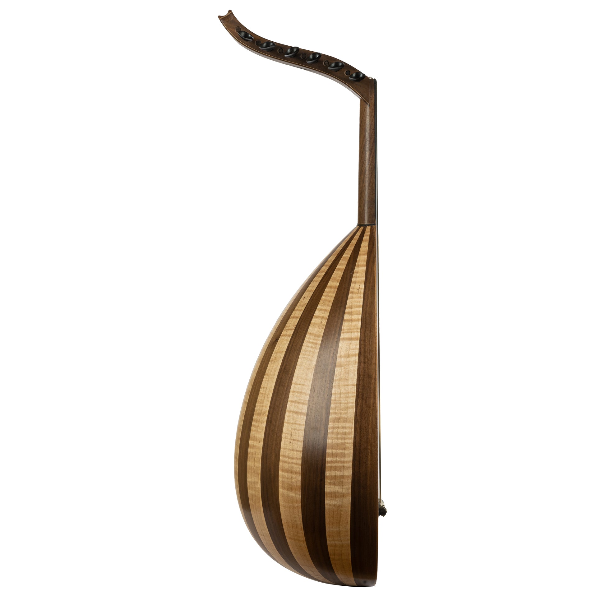 Al Naarnj Oud is characterized by a strong and resonant sound, which makes it unique among the Ouds of the same quality. This is due to its design with only one sound hole. Carefully crafted from maple wood, sourced from the Canadian maple tree, as well as premium walnut wood. The orange oud is decorated with elegant Damascene mosaic touches, giving it a traditional aesthetic touch. This oud combines luxury and powerful sound, making it a distinctive addition to the luxury oud collection.